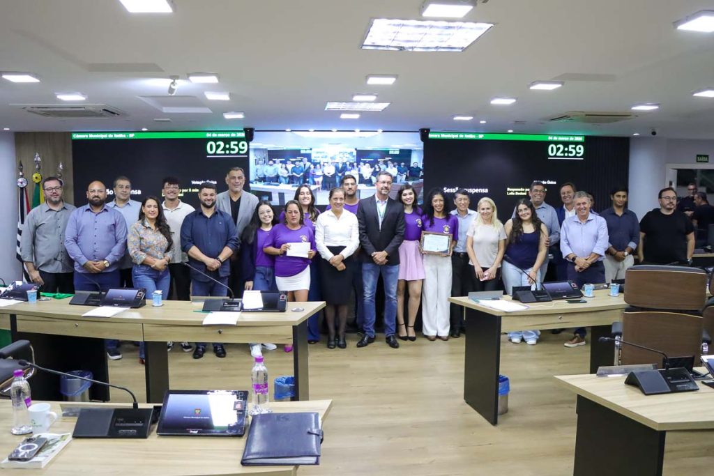 Ainda durante a sessão, foi realizada a entrega da moção 263/2025, que congratula o Projeto Maria’s, desenvolvido por alunos da Universidade São Francisco (USF), pela contribuição ao fortalecimento das políticas de equidade e pelo impacto direto na promoção da igualdade de gênero no município de Itatiba. Em plenário, os responsáveis pelo projeto receberam a homenagem das mãos da vereadora Leila Bedani (PSD), autora da moção.