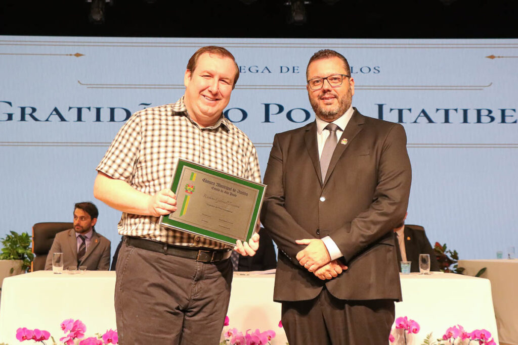 O vereador Juninho Parodi falou sobre o significado da honraria. “Nesta noite, esta Casa de Leis se ilumina com um sentimento profundo de gratidão. A Câmara Municipal de Itatiba cumpre, na solenidade de hoje, um de seus mais nobres papéis, que é o de celebrar cidadãos e instituições que têm contribuído para o bem comum com responsabilidade, solidariedade e compromisso. Cada homenageado aqui representa uma história de esforço, entrega e amor por nossa cidade. A gratidão que expressamos hoje não é apenas simbólica, mas um gesto de reconhecimento público”, discursou o parlamentar.