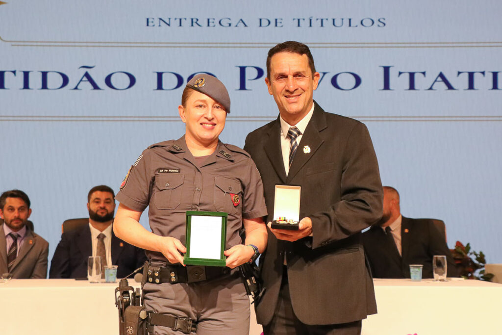 Para encerrar a noite, foram entregues as medalhas de Mérito da Segurança e Cidadania aos homenageados Luiz Antonio de Pugas e Regiane de Souza Munhoz, que não puderam comparecer à solenidade realizada no dia 10 de novembro. Na cerimônia desta quinta-feira, Luiz Antonio e Regiane receberam a honraria das mãos dos vereadores Cadu e Cornélio da Farmácia, respectivamente.