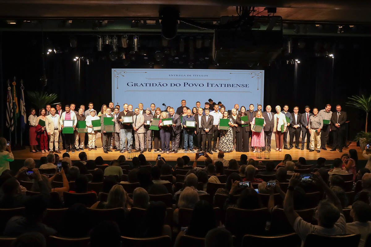 Foi realizada na última quinta-feira (27), no Teatro Ralino Zambotto, a Sessão Solene de entrega dos títulos de Gratidão do Povo Itatibense. Estiveram presentes na cerimônia o presidente da Câmara, David Bueno; e o prefeito Thomás Capeletto, além de demais vereadores, suplentes e autoridades municipais.