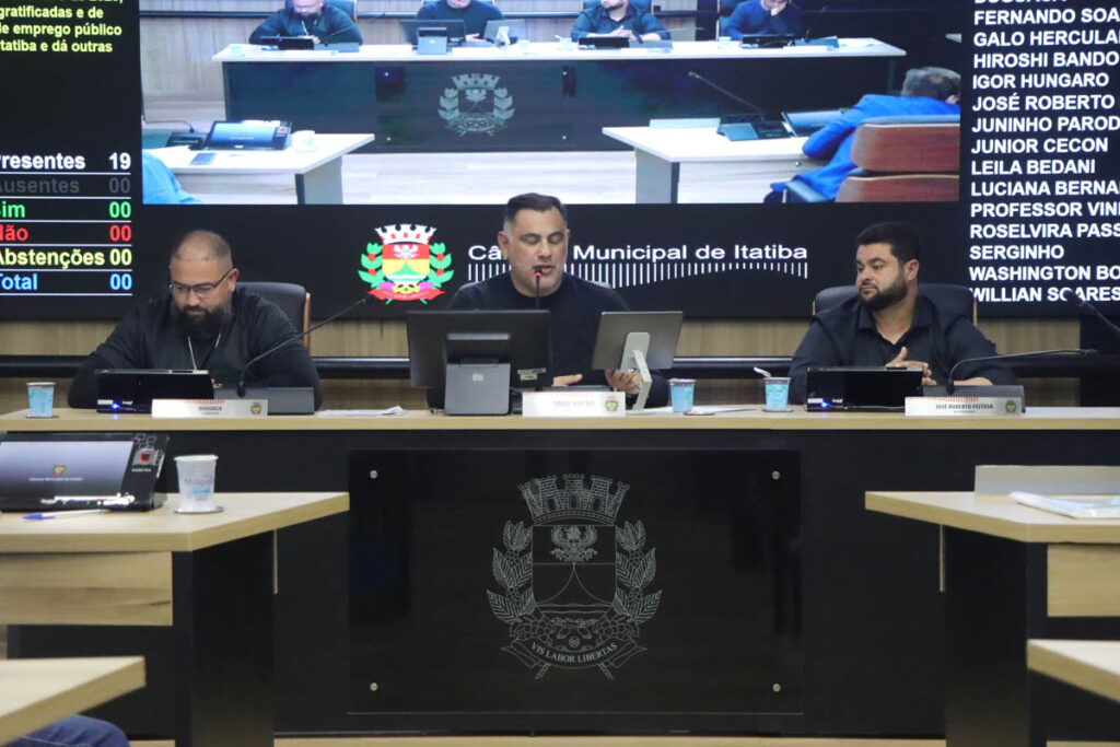 De autoria da Mesa Diretora, foi apreciado em turno único de discussão e votação o projeto de resolução 30/2025, que trata sobre funções gratificadas privativas de titulares de emprego público efetivo da Câmara Municipal de Itatiba. A matéria extingue a função de Secretário da Escola do Legislativo, além de criar duas novas vagas para membros da equipe de licitações.