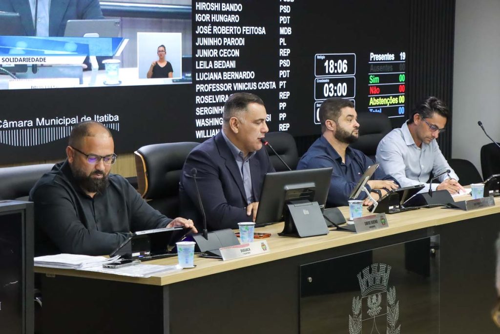 A Câmara Municipal de Itatiba realizou, na tarde desta quarta-feira (04), sua 46ª Sessão Ordinária. Na Ordem do Dia, três projetos de lei foram submetidos ao primeiro turno de discussão e votação. Houve, ainda, Sessões Extraordinárias para tramitação em segundo turno de um dos itens da pauta; e apreciação de um quarto projeto até o turno final.