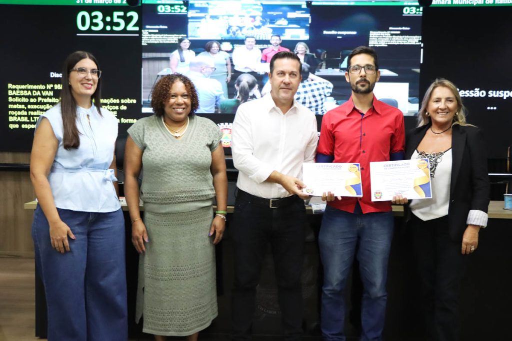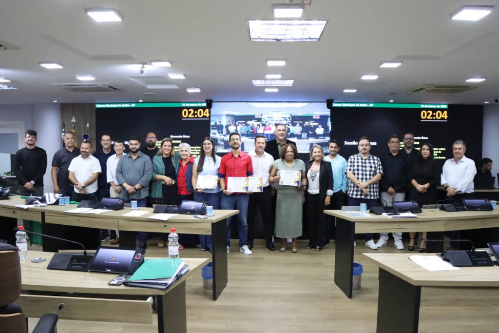 Ainda durante a sessão, foi realizada a entrega da moção 43/2026, que congratula os formandos da Universidade Virtual do Estado de São Paulo (UNIVESP) pela colação de grau realizada no dia 11 de fevereiro deste ano. Em plenário, os homenageados receberam a moção das mãos do vereador Washington Bortolossi (PP), autor da propositura.
